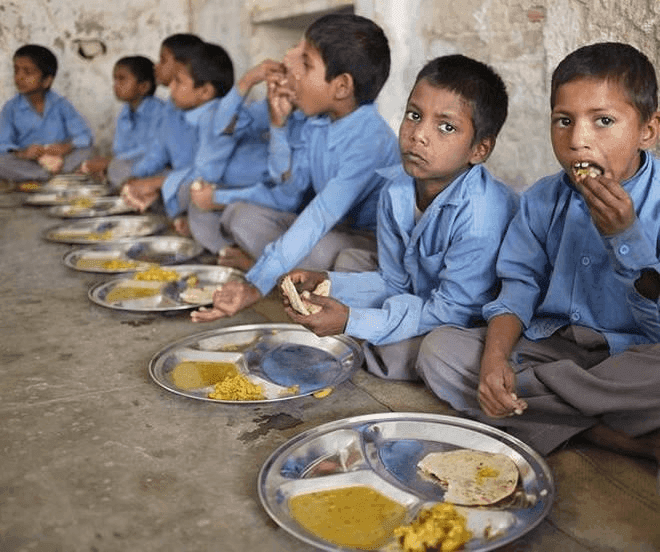 भारत में मिड डे मील स्कीम, जिसे अब पीएम पोषण योजना कहा जाता है, साल 1995 में लॉन्च की गई थी। तब से लेकर अब तक यह स्कीम कई बदलावों से गुज़री है। शुरुआत में इसके तहत बच्चों को राशन दिया जाता था और सभी सरकारी और सरकारी सहायता प्राप्त प्राथमिक स्कूलों में पका हुआ भोजन देने की शुरुआत अप्रैल 2002 में हुई। इसने स्कूलों में बच्चों का नामांकन बढ़ाने में काफ़ी अहम भूमिका निभाई है। वर्तमान में इसे भारत की सबसे सफल परियोजनाओं में से एक माना जाता है। हालांकि यूनेस्को की रिपोर्ट के अनुसार इसकी कई सिफ़ारिशें भारत के लिए प्रासंगिक हैं और इसकी सिफ़ारिशों के मुताबिक भारत की मिड डे मील स्कीम को और बेहतर किया जा सकता है। भारत में अलग-अलग राज्यों की ज़रूरतों के मुताबिक मिड डे मील का मेन्यू तय किया जाता है और इसमें अक्सर दाल, चावल, रोटी जैसे आहारों को शामिल किया जाता है। लेकिन अक्सर इसमें फल और प्रोटीन से भरपूर खाद्य पदार्थ कम ही नज़र आते हैं। आज देश के राजनीतिक स्थिति के अनुसार मिड डे मील में अंडे और मांसाहारी भोजन जैसे प्रोटीन से भरपूर खाद्य पदार्थ को भी बंद किया जा रहा है।